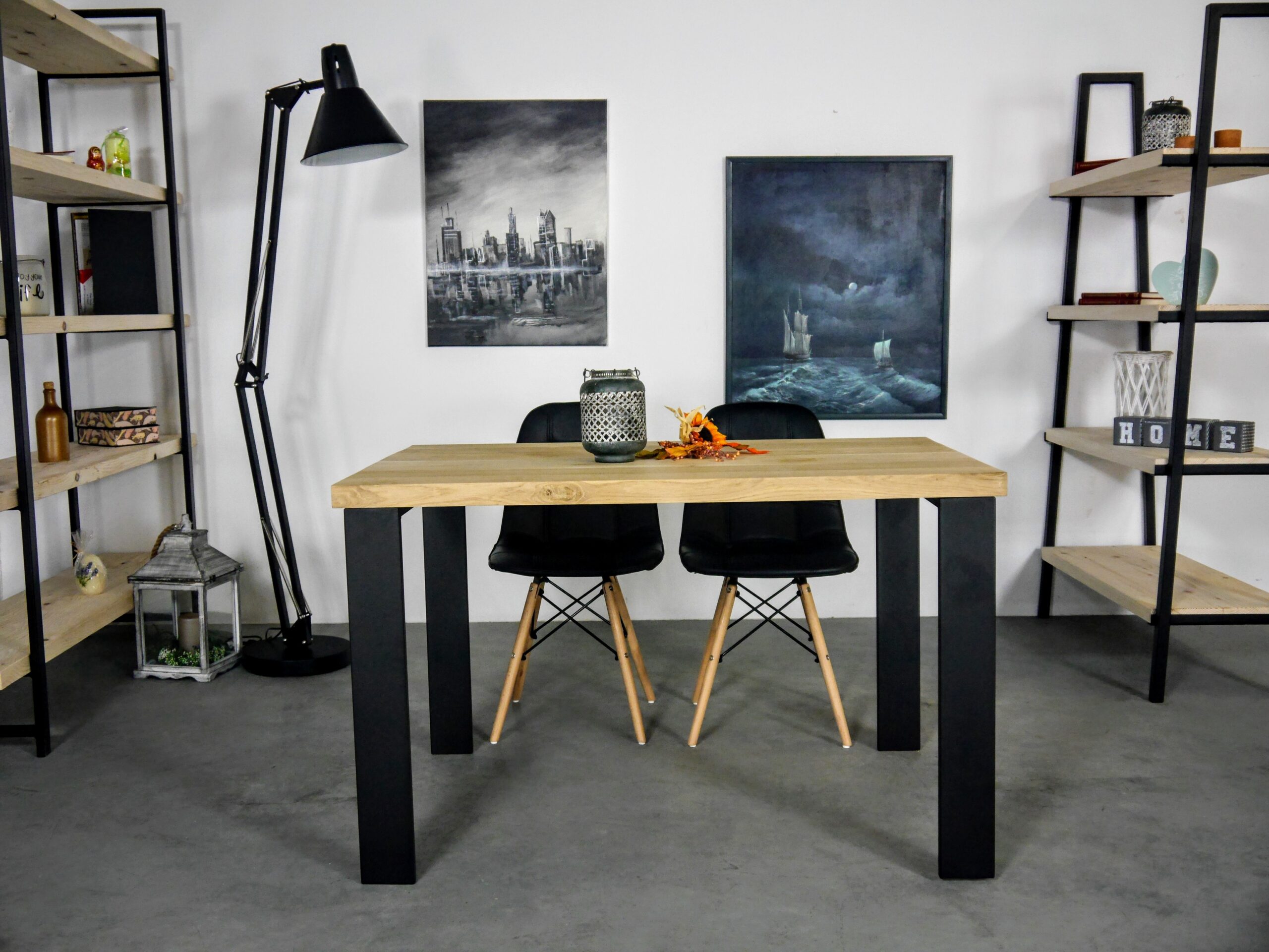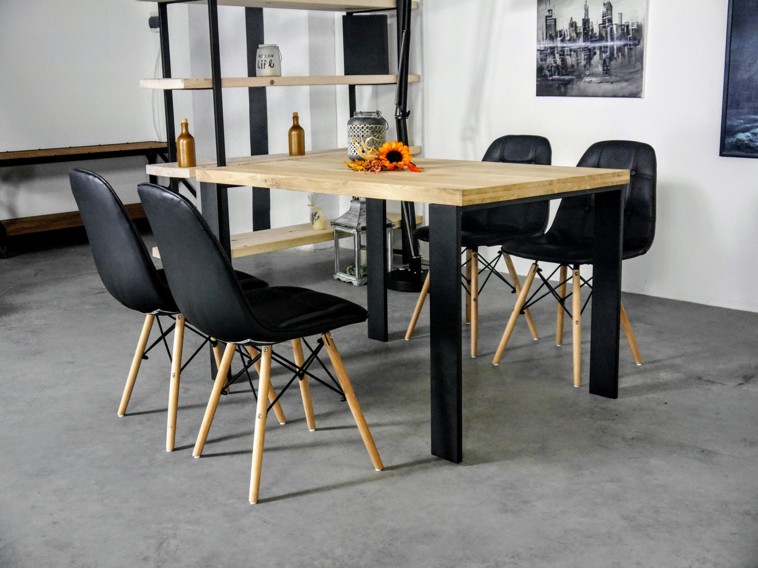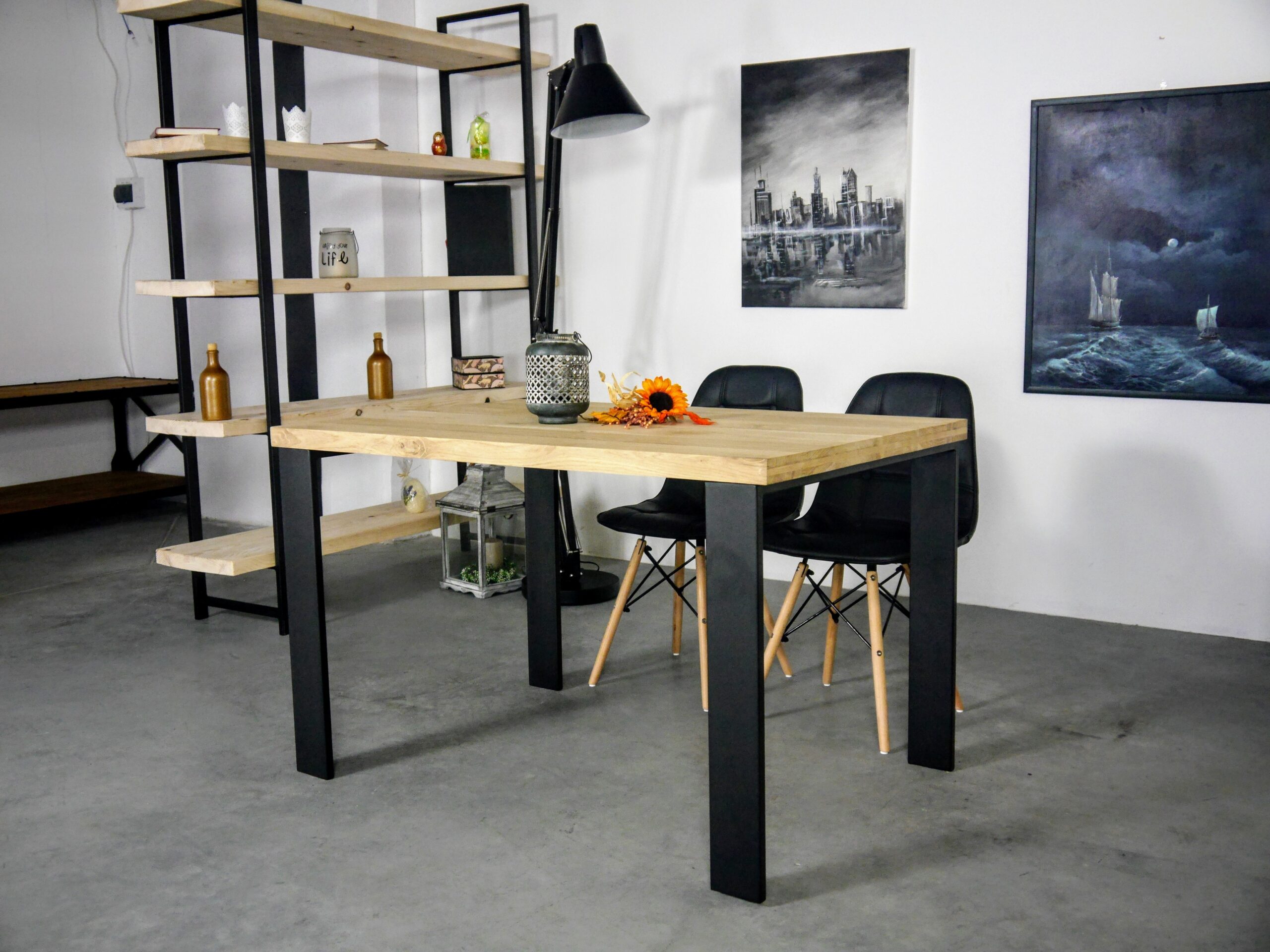 Nowoczesny stół  loftowy z litego drewna. Stół loft połączenie drewna i stali w nowoczesnym stylu.